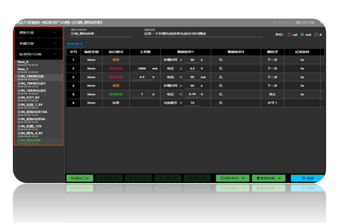 一、概述(主設(shè)置方案界面簡(jiǎn)介)工作方案腳本的編程性能的強(qiáng)弱是整個(gè)電池測(cè)試系統(tǒng)非常重要的指標(biāo)。1.LANBTS電池測(cè)試系統(tǒng)允許用戶(hù)對(duì)每個(gè)通道或者是多個(gè)通道同時(shí)或是分別設(shè)定多至65500個(gè)“工作步驟”的過(guò)程編程。2. 每個(gè)“工作步驟”由變量操作、工作模式、結(jié)束限制條件1、結(jié)束限制條件2、以及跳 轉(zhuǎn)(跳轉(zhuǎn)至)、記錄條件等五個(gè)部分組成。3. 變量操作幫助用戶(hù)操作(用戶(hù))自定義的變量來(lái)實(shí)現(xiàn)多功能的測(cè)試方案編輯;4. 工作模式是...